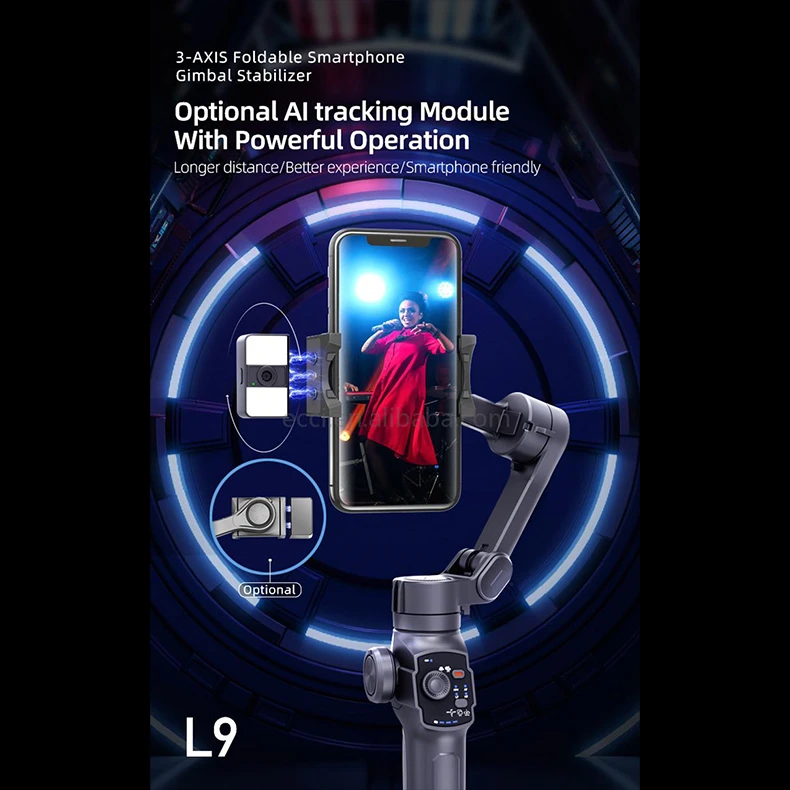 این گیمبال L9 سوژه یاب و لرزش گیر است. این گیمبال دارای دکمه زوم بوده و میتوانید از آن در هنگام فیلمبرداری استفاده کنید و همچنین دارای سه پایه است که مناسب برای سطوح صاف است . این گیمبال مناسب فیلم برداری و عکسبرداری است و تصاویری بدون لرزش و باکیفیت به شما ارائه میکند. این گیمبال وزن سبکی داشته و حمل است. این ابزار با IOS و اندروید سازگار خواهد بود. . استفاده از این ابزار در صورتی که قرار است از گوشی همراهتان به عنوان ابزاری برای تهیه فیلم استفاده کنید میتواند به شما کمک شایانی داشته باشد.با استفاده از محور pan نامحدود شما می توانید به راحتی 360 درجه چرخش را تجربه کرده و تصاویری منحصر به فرد را ثبت نمایید.