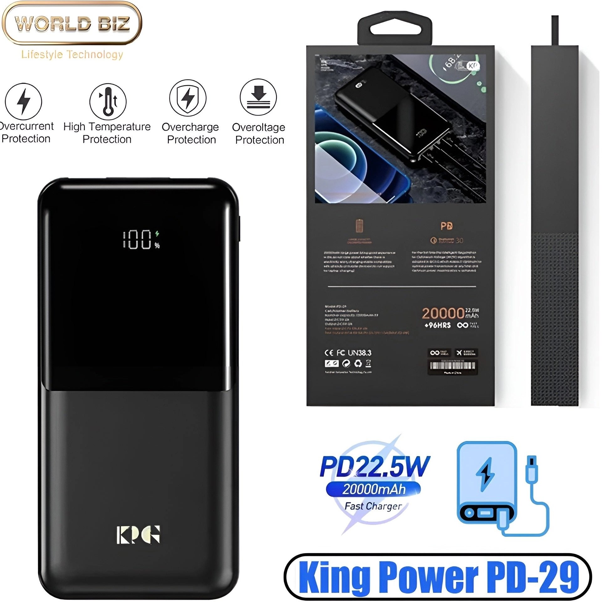 مشخصات پاوربانک فست شارژ 22.5w 20000 کی پی جی KPG PD-29 :