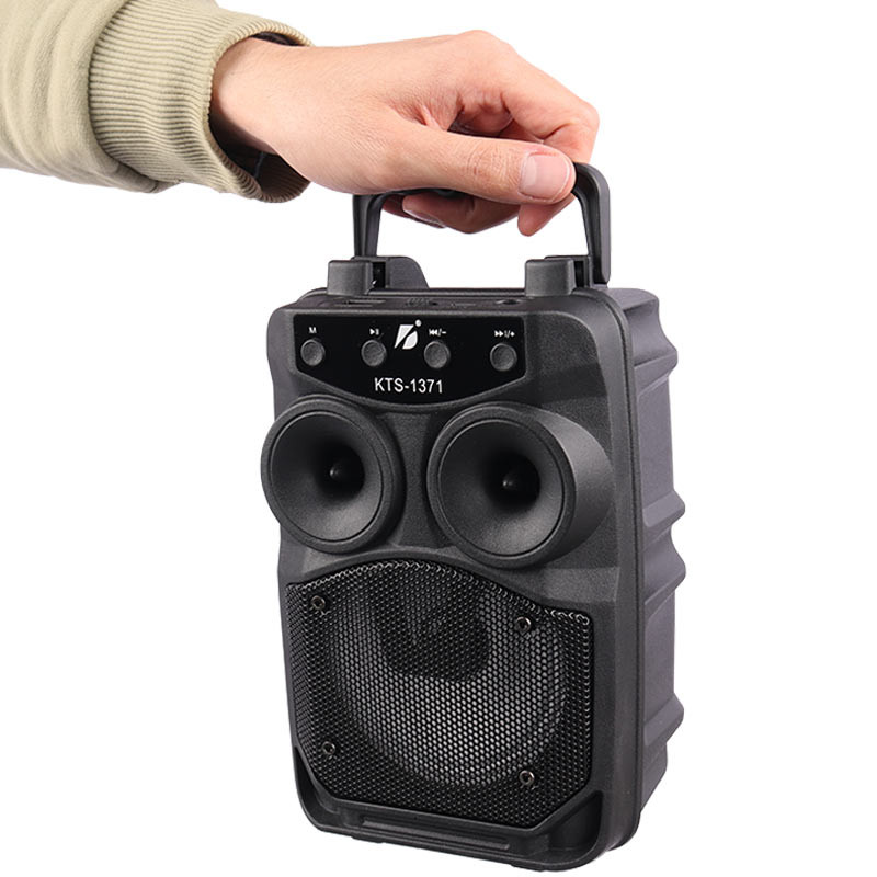 اسپیکر بلوتوثی قابل حمل KTS-1371 یک انتخاب مناسب برای کاربرانی است که به دنبال یک دستگاه صوتی با کیفیت و قابل حمل هستند. این اسپیکر با طراحی کوچک و قابل حمل، امکانات گستردهای را ارائه میدهد. صدا و کیفیت صوتی این اسپیکر بسیار واضح و با جزئیات بوده و قدرت خروجی صوتی مناسبی دارد که میتواند در فضاهای کوچک و متوسط صدا را به خوبی پخش کند. قابلیت اتصال به دستگاههای مختلف از طریق بلوتوث، AUX و یا کارت حافظه، این امکان را به کاربر میدهد تا به راحتی از منابع مختلف موسیقی و صدا استفاده کنند. کاربران میتوانند با استفاده از دکمههای موجود بر روی اسپیکر، صدا را کنترل کرده و ورودیهای مختلف را تنظیم کنند. این دستگاه دارای باتری داخلی است که به کاربر امکان استفاده بیوقفه را میدهد و میتواند طول عمر مفید بالایی داشته باشد.