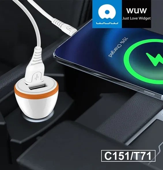 شارژر فندکی WUW مدل T71همراه با کابل میکرو
