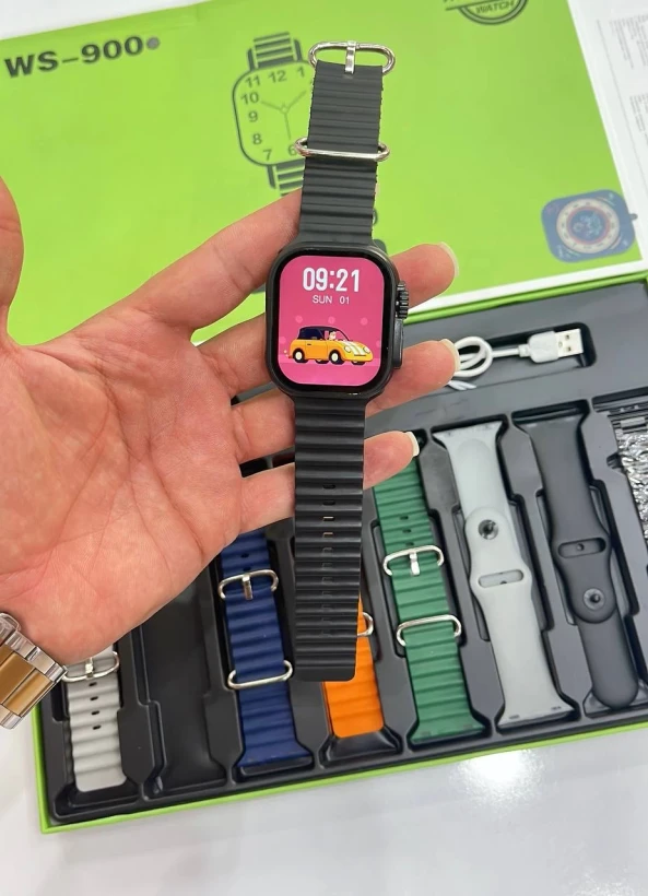 ساعت هوشمند مدل WS-900 یک ساعت هوشمند و مدرن است که به شما امکان میدهد با تمام ویژگیهای جذابش به راحتی در محل کار، ورزش و حتی مواقع رسمی، خوش تیپ و شیک باشید.این ساعت هوشمند دارای قابلیتهای فراوانی است. با قابلیت مکالمه (از طریق اتصال به بلوتوث) و پخش موسیقی، شما میتوانید از تماس با دوستان و موسیقیهای مورد علاقهتان لذت ببرید. اما قابلیت برجستهتر این ساعت هوشمند، سنسورهای سلامتی فراوانی است که دارد. با پایش ضربان قلب، فشار خون، اکسیژن خون و…، این ساعت به شما کمک میکند تا سلامتی خود را بررسی کرده اما لطفاً توجه داشته باشید که این ساعت به هیچوجه، یک وسیله پزشکی نیست و تمامی دادههای مربوط به پایش سلامت، صرفاً به منظور اطلاع کلی شماست ساعت هوشمندWS-900 دارای 8 عدد بند سلیکونی قابل تعویض داخل جعبه میباشد. شارژر داخل جعبۀ ساعت از نوع وایرلس و مگنتی است. چنانچه گفته شد، بند این مدل، قابل تعویض با تمام بندهای اپل واچ میباشد.از امکانات دیگر این ساعت میتوان به منوی بسیار روان و سریع به همراه سخت افزار قوی و پشتیبانی از زبان فارسی اشاره کرد.